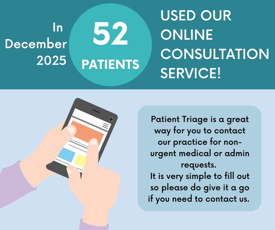 Last month 52 patients used our online consultation service (also known as Patient Triage) to contact us online.